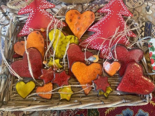 Er zijn weer nieuwe harten in 2 maten en ook sterren. Dit keer gemaakt van zwarte klei. De grote kosten €4 en de kleine maten €2,50 per stuk.