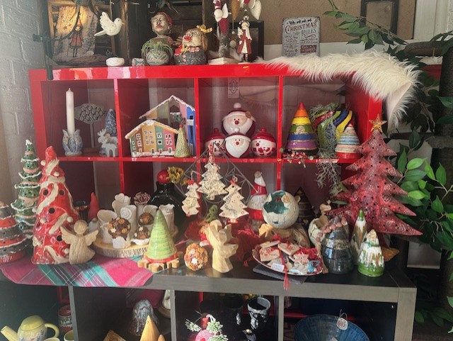 Onze kerst-keramiek, aangevuld met niet-keramiek artikelen die wij ook erg leuk en apart vinden, staan uitgestald in onze winkel.