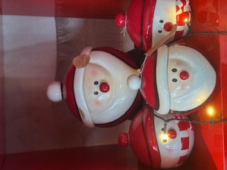 kerstman-potten in 2 maten. Met deksel. Prijs €18,50 of €25.